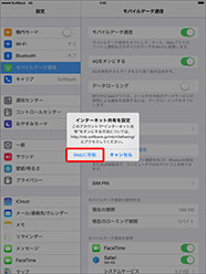 「設定」>「一般」>「情報」を選択すると「キャリア設定アップデート」のポップアップが表示されるので、「アップデート」を押してください。-