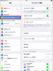 - iOS 6 をご利用の場合は「一般」 → 「モバイルデータ通信」を押します。