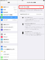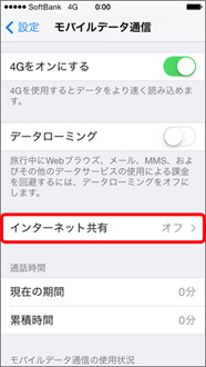 - テザリングオプションに未加入の場合は、「インターネット共有を設定」と表示されます。