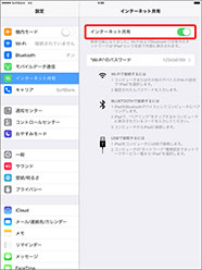 「インターネット共有」のオフ/オン切り替えボタンを押します。