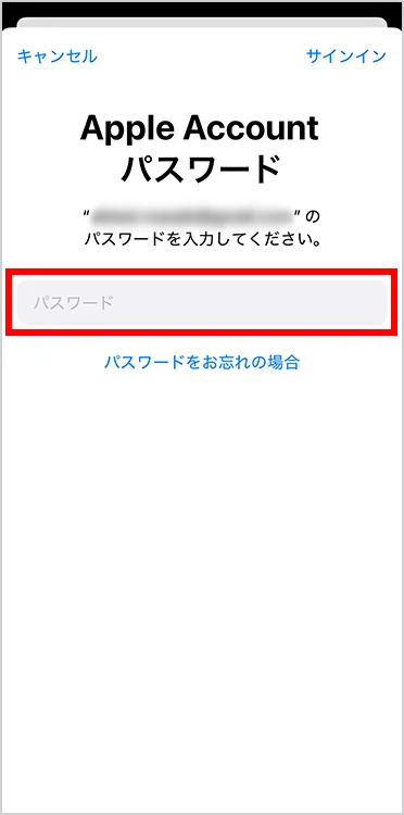 Apple Account のパスワードを入力し「OK」を押します。