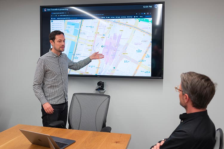 社内でディスカッションするデイブ・コール氏。取材は米国・サンフランシスコのMapbox本社で行われた