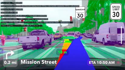 Vision SDKで開発されたアプリを搭載するモバイル機器を自動車に取り付ければ、カメラで収集した映像から交通標識、近くの車両や人、車線などを検出し、ARによる細かな運転指示を出す、といったことが可能になる。