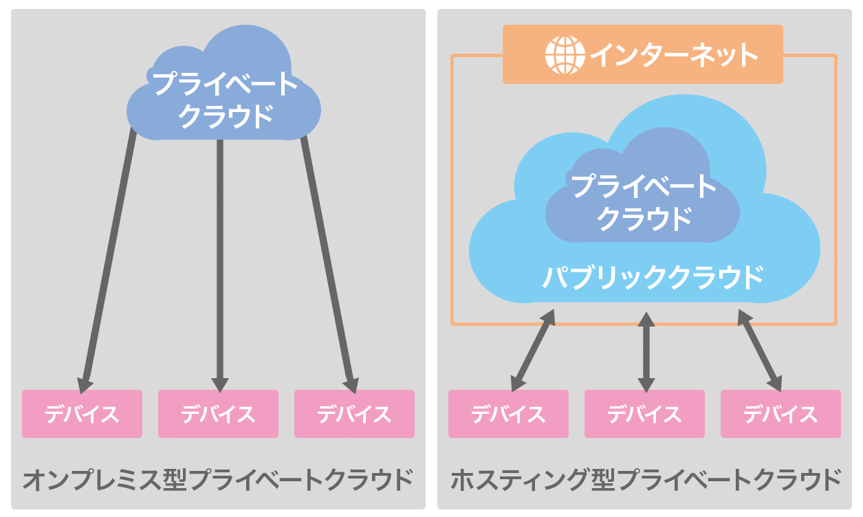 プライベートクラウドの中にも大きく分けてオンプレミス型とホスティング型があります。