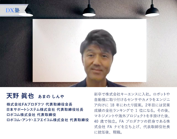 毎回異なるテーマでDXの本質に迫る、連載企画「DX塾」。第3回目は、スマートファクトリー事業を手掛ける株式会社FAプロダクツ 代表取締役会長の天野眞也氏を講師に招き、日本の製造業のDXについて伺った。