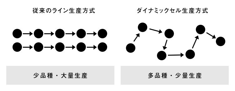 また、エンジニアリングチェーンとつながることで、市場のニーズに応じて、製造の工程を柔軟に変更し、変種変量に対応することができるようになります。フォード社が第二次産業革命で始めたようなライン生産方式では、決まった製品を大量生産するには適していますが、組み立てる順番があらかじめ決まってしまいます。