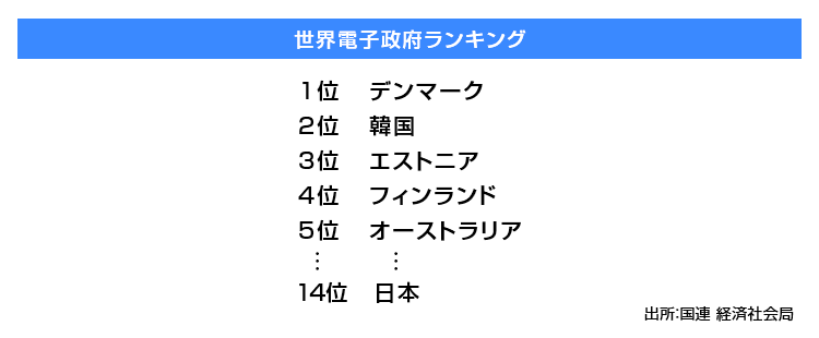 実際はどうか。国連が2020年7月10日に発表した「世界電子政府ランキング」では、日本は193ヵ国中14位という結果だった。トップではないが下位でもない。これが俯瞰的に見た日本の現在地だ。