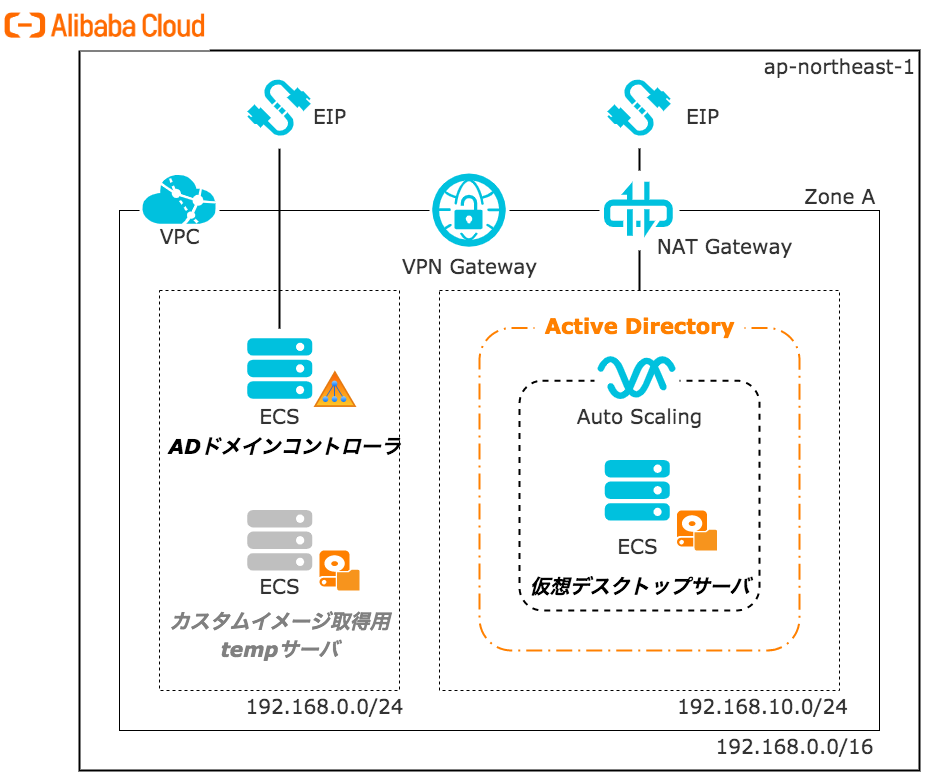 Alibaba Cloudでは、VPC上にWindows Server 2019をデプロイすることが可能で、オンプレミスで構築するのと同様に、ADを管理するドメインコントローラの構築がクラウド上で可能です。以前のバージョンでは、物理サーバ上にドメインコントローラを構築することが推奨されていましたが、昨今では多くのお客さまが仮想環境やクラウド環境にドメインコントローラを移行しており、ADのために物理サーバ環境を運用するコストから解放されています。