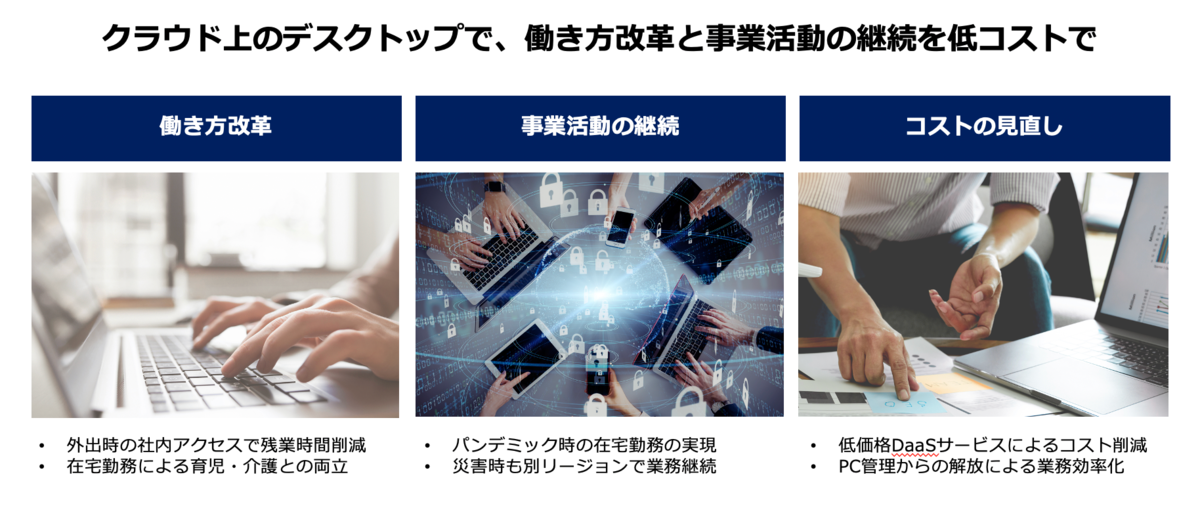 昨今の働き方改革、また新型コロナウイルスの影響により、働く場所を選ばないリモートワークの導入が推奨される中、クラウドを利用して仮想のデスクトップ環境を構築させるDaaS(Desktop as a Service)が注目を集めています。