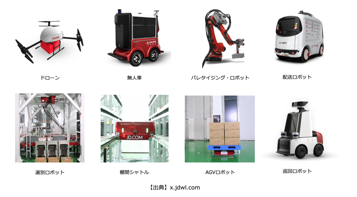 なお、ジンドンは、ECに必要な物流業務に利用する様々なロボットも開発しました。以下はその一部です。現在も、多くの物流作業現場で活躍しています。