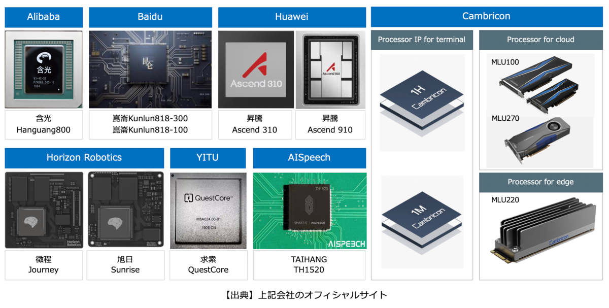 AIチップ専門会社キャンブリコン(Cambricon)は、2020年7月20日に、 Horizon Roboticsは、上海証券取引所科技創新板( SSE STAR Market, Shanghai Stock Exchange, Science and Technology Innovation Board)に中国初のAIチップ企業として上場を果たしました。キャンブリコンは、クラウド・エッジ・ターミナル向けのプロセッサー製品ポートフォリオを持っており、AIチップのパイアニアとして注目を集めています。