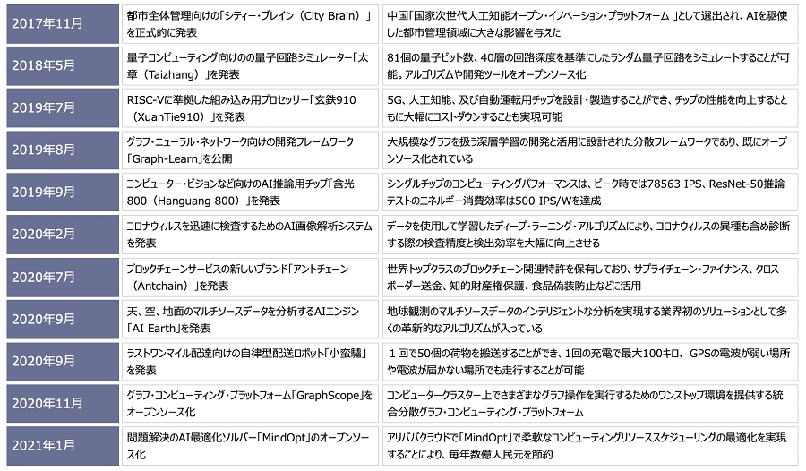 アリババDAMOアカデミーは、設立後の3年間で、どのような成果を創り出したのでしょうか。その代表的な成果を、時系列で紹介します。