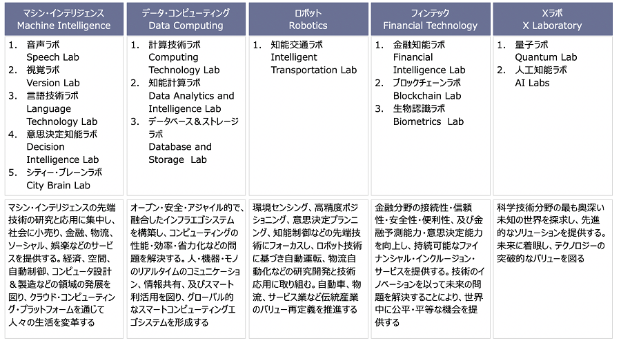 アリババDAMOアカデミーの技術研究領域と拠点数