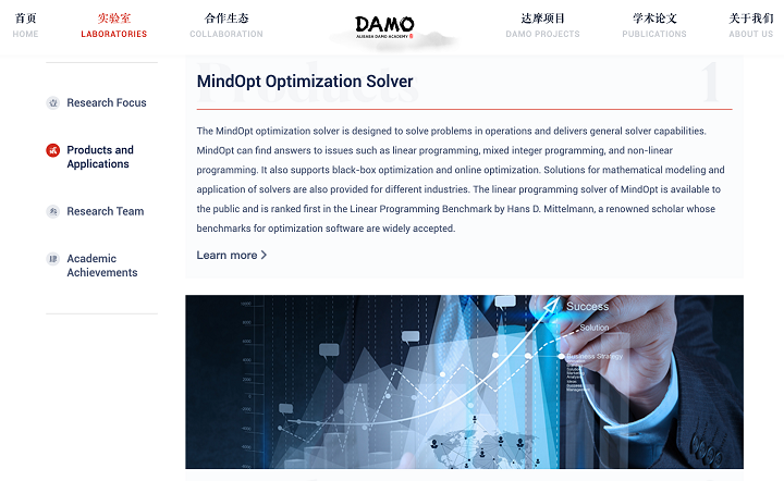 2021年1月には、AI最適化ソルバー「MindOpt」をオープンソース化しました。MindOptは、線形計画法、混合整数計画法、非線形計画法、ブラックボックス最適化、オンライン最適化、その他の一般的な最適化ソルバー機能など最適化問題を解くためのソルバーです。現在は国際ランキングに参加し、世界をリードする成果を上げています。