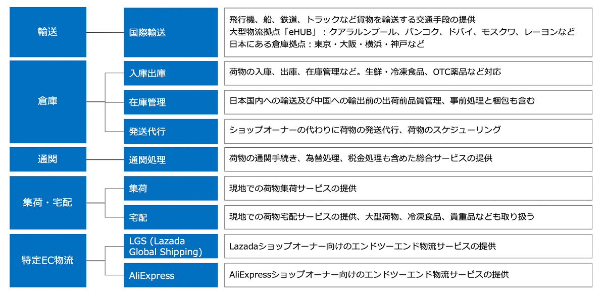 菜鳥のクラウドサービス及びソリューション一覧(筆者作成)