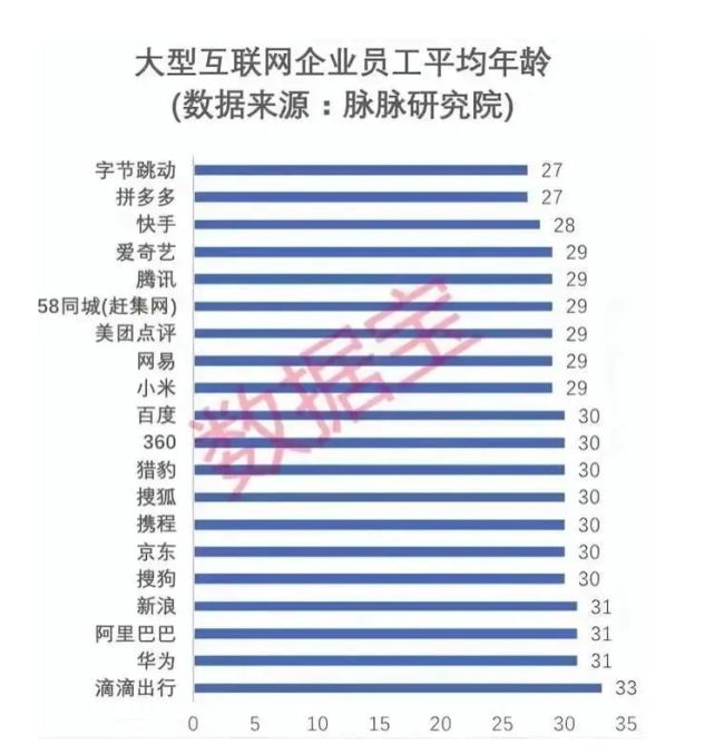大手ネット企業の社員の平均年齢(出典:騰訊網)