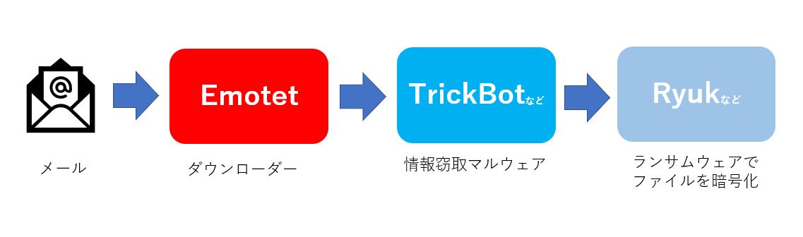 Emotetはランサムウェア*など、情報を搾取するツールの呼び水となるマルウェアです。
