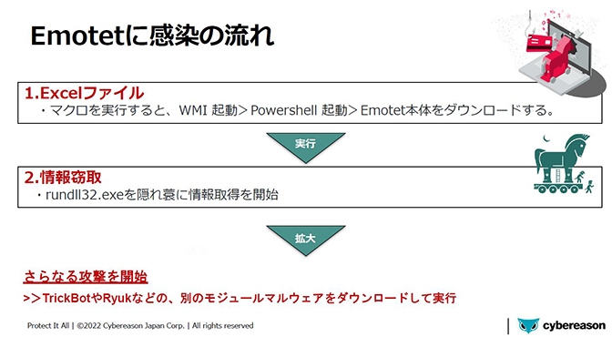 2022年に入り、Emotetと呼ばれるマルウェア(コンピュータウイルス)の感染数が爆発的に伸びています。本Blogでは日本のマルウェア検知・対策製品市場で高いシェアを持つCybereasonのプロフェッショナルによる講演をもとに、Emotetの特徴と対抗手段をご紹介します。