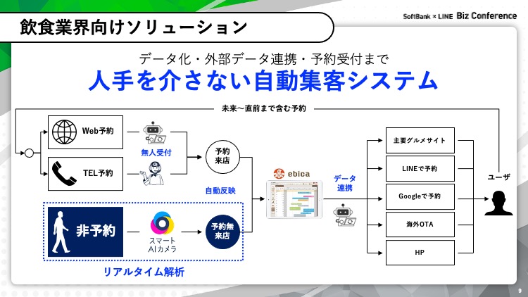 「ソフトバンクはこの課題に対して、AIの力で支援したいと考えます。例えば、空席状況の解析や来店客の属性分析、年齢認証などです。さらには無人の予約受付、需要予測、データの分析などでもどう支援できるのかを検討しているところです」(弓削)