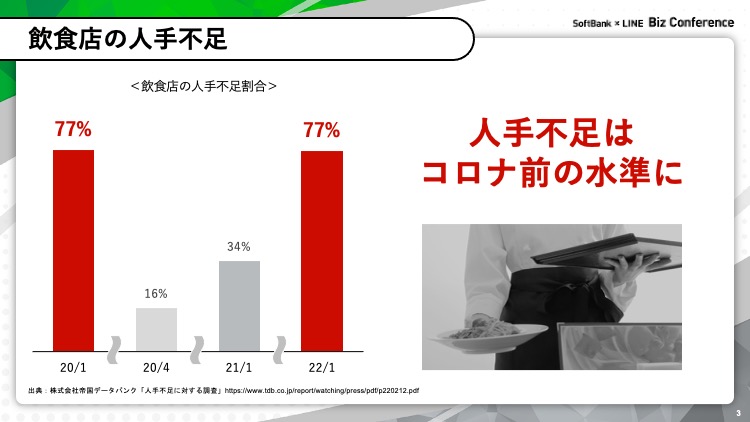コロナ禍で大打撃を受けた日本国内の飲食業界は、その市場規模こそコロナ前の2019年の水準には戻っていないものの徐々に回復しつつあります。それにともない顕在化してきているのが人手不足です。