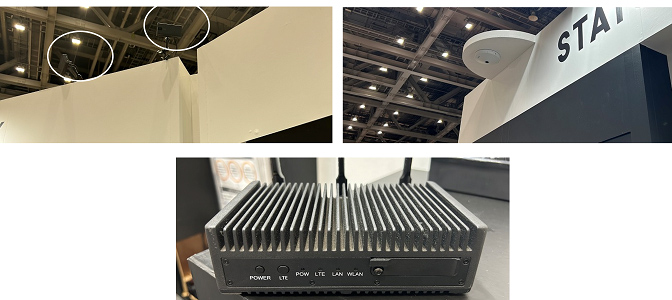 今回AIワールドで体験したブースには、2台のカメラ(人数カウントをする広角エリアを映すカメラと人の滞在時間を計測するカメラ)とエッジデバイスがあり、その他にデータを可視化するPCがありました。