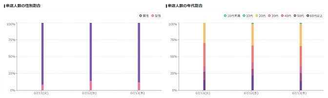 また性別や年代別にも集計が可能です。ターゲット別にマーケティング戦略を実施することができるので、顧客層に合わせたサービスや商品の提供によって顧客満足度を向上させることにもつながるでしょう。