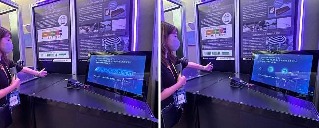 デモ体験では、テラヘルツの電波は直進するパワーが強いため、手でさえぎると「圏外」と表示され遮断されてしまうことが分かりました。