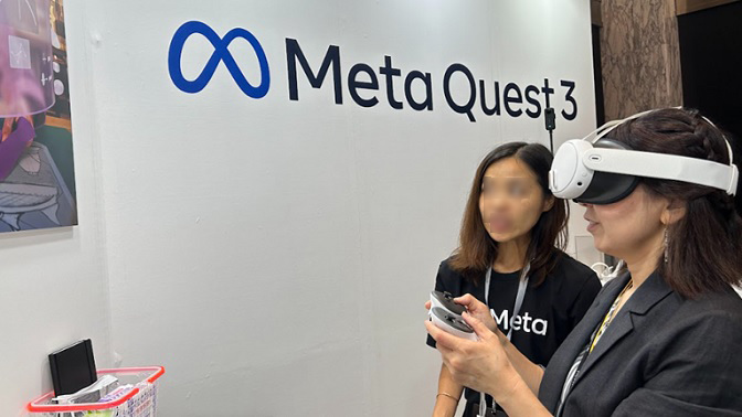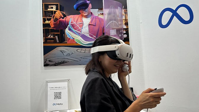 VR機能に加えてMR(複合現実)にも対応している新型ヘッドセット「Meta Quest 3」のデモ体験が行われていました。