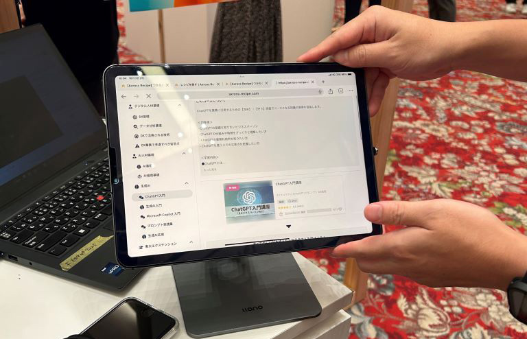 「こちらのブースでは、実際の画面を見ながらAxross Recipe ではどんなことができるのかをお客さまに体験していただけます。企業では『社内導入したけれど使いこなせない』『導入を検討をしているが、AIの知識やノウハウのある者がいなくて不安がある』との声がよくあります。