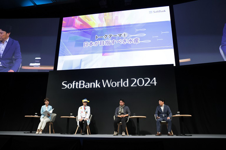 魚をはじめとした水産物は私たちの食生活に欠かせない存在ですが、現在、水産業界は気候変動や人材不足など、多くの課題に直面しています。これらの課題を解決するために、AI技術がどのように活用されているのか、またはどう活用していくべきかをテーマに、株式会社PICANTE代表取締役の榎戸氏をモデレーターとして、東京海洋大学の客員教授であるさかなクン、株式会社スペックホルダーの代表取締役社長である大野氏、ソフトバンクの須田を交えてトークセッションが行われました。