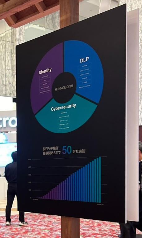 今年から増えたEdition「Cybersecurity」はサイバー攻撃対策のカテゴリで、昨今多発している標的型攻撃メールに対し、システムでの防御に加え社員向けのセキュリティ教育も見直したいというお客さまのニーズが高まっていることを受け、新たなソリューションとして販売を開始したそうです。従来から提供していたIDaaS(不正アクセス対策とシングルサインオン)である「Identity Edition」と、情報漏えいを防止するためのソリューションである「DLP Edition」と併せて、クラウドサービスを利用している企業に対して、不正アクセス対策、メールやクラウドストレージ領域のセキュリティ強化、さらには標的型攻撃メール対策までオールインワンで解決できるのがHENNGEの強みだとのこと。今後は、より大きな規模のお客さまに向けた機能を拡充させて展開していくことを目指しますと語ってくれました。