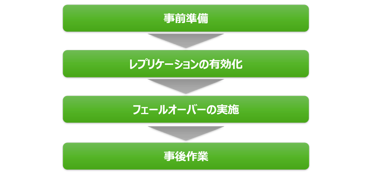 フェールオーバー後は、移行先サーバに対する事後作業が必要です。思いつくものとして以下があります。