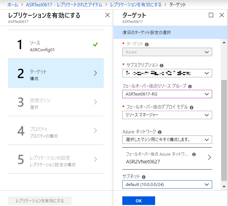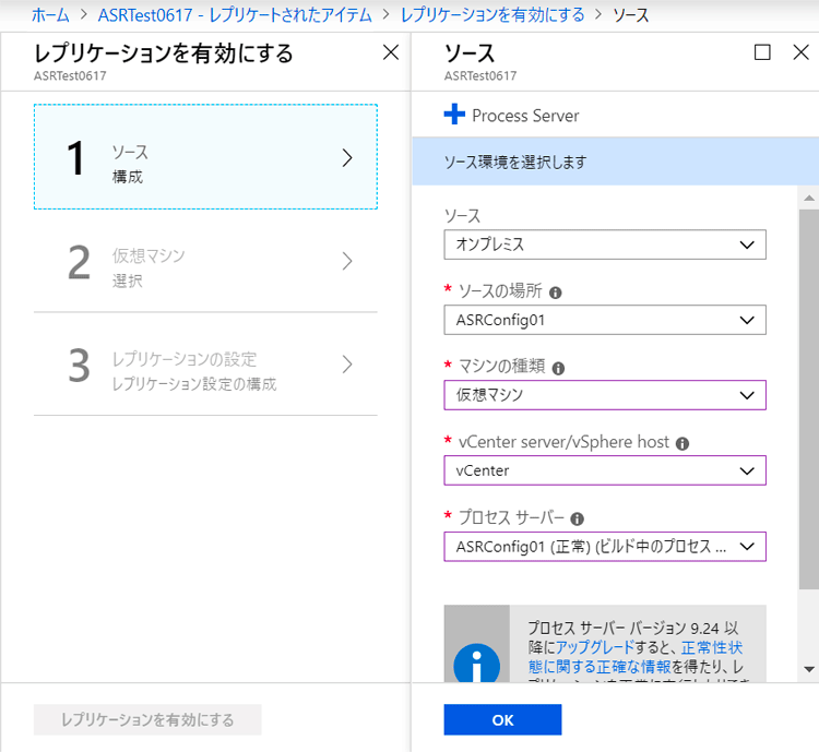 レプリケーションを行うために、ASRで移行元サーバのレプリケーションを有効にします。