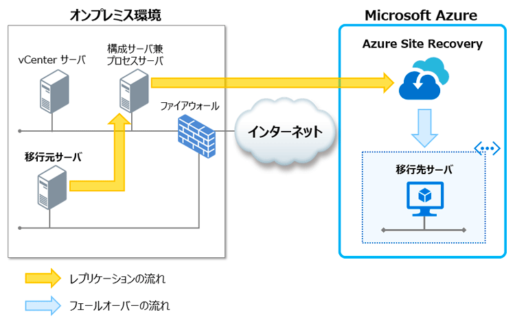 オンプレミスのサーバをAzureへ移行するには、レプリケーションが完了した後にフェールオーバーを実施します。
