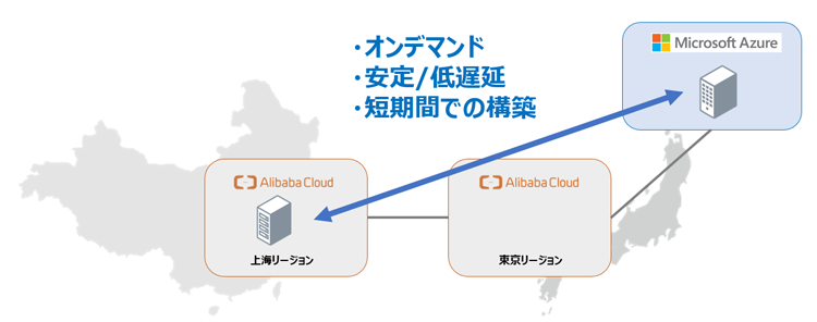 我々ソフトバンクはお客さまのあらゆるニーズに対応すべくさまざまなクラウドサービスを提供しています。その中の一つ、Alibaba Cloudを中国本土へのサーバ展開と通信経路の確保に利用します。Alibaba CloudとAzureのマルチクラウドを実現することで中国外のAzureリージョンと中国本土のAlibaba Cloudを簡単に接続出来、結果、安定した通信環境を構築することが可能です。