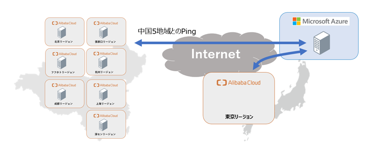 最初に日本のAzureと中国本土のサーバをインターネット経由で接続し、その際のLatencyをPingで測定します。次に、日本と中国間をAlibaba Cloudの専用線で接続し、同様にPingでLatencyを測定します。2つのシナリオの結果の比較を通してマルチクラウド構成の有効性を紹介します。