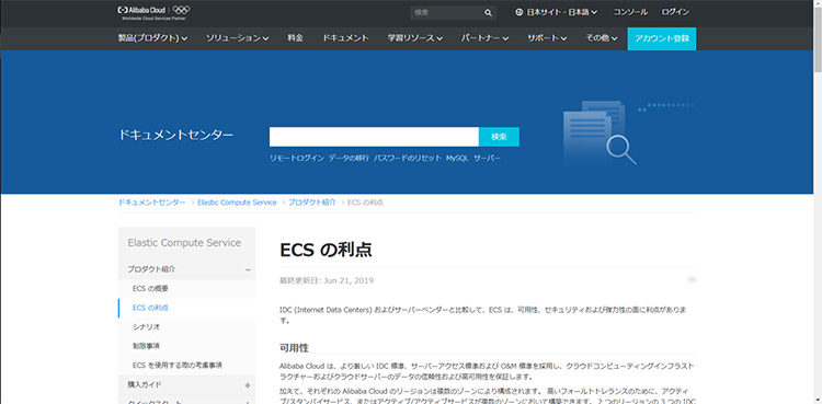このドキュメントセンターでは、製品の概要、利点、課金方法、ベストプラクティス…などなど、Alibaba Cloudを始めるのに必要な情報が揃っています。