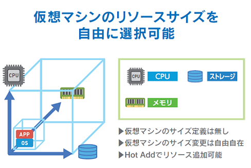 ASPIREでは、リソースプール型というメニューを提供しており、サーバのサイズを自由に設定する事ができる ためオンプレミスのシステムをそのままクラウド化することが可能です。