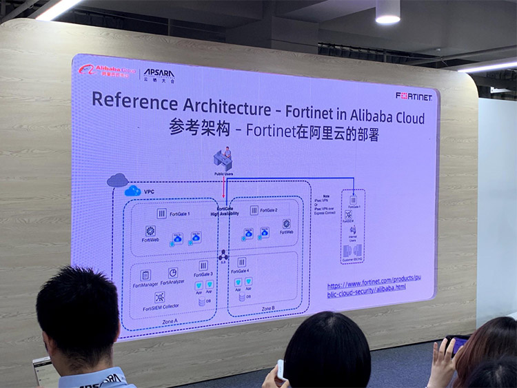 日本でもおなじみのFortigateですが、Alibaba Cloudとも提携し世界中のさまざまな顧客に提供されているという話で、事例の内容は中国に拠点がある大手外資企業がヘッドクオーター拠点のアメリカ、シンガポールをAlibaba Cloudのネットワークプロダクトで接続し、Fortigateセキュリティーを組み合わせて利用しているというものでした。世界という視点で見てもAlibaba Cloudが存在感を出してきているなと感じました。