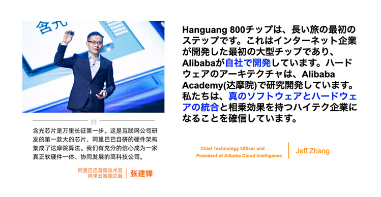 今回一番大きな話題となったAlibaba自社開発のGPUの発表がありました。AIチップはGoogleも開発を進めていますが、Alibabaは真のソフトウェアとハードウェアの統合と相乗効果を持つハイテク企業戦略を打ち出しています。すでに実績値を出してきており、スピード感を感じます。近々Alibaba Cloudのプロダクトとして利用ができるようになることを期待したいですね〜。