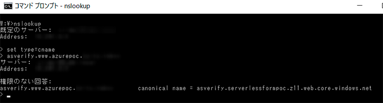 DNSレコードの設定が完了したら、手元の端末から nslookupコマンドなどを使い登録したレコードを正しく解決できるか確認してください。