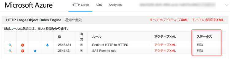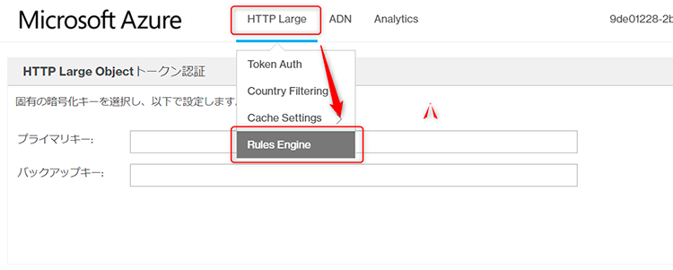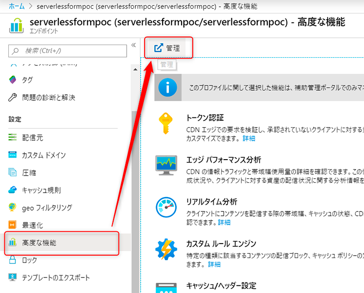 Azure CDNから 高度な機能 > 管理 とクリックし、Rules Engineの管理コンソールを開きます。