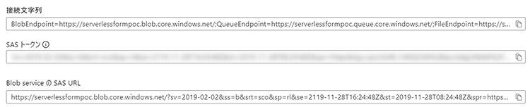 トークンが発行されたら、「SASトークン」をメモしておきます。