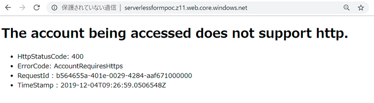 今回は「安全な転送が必須」オプションを有効にしているので、HTTPSでのみ接続可能です。