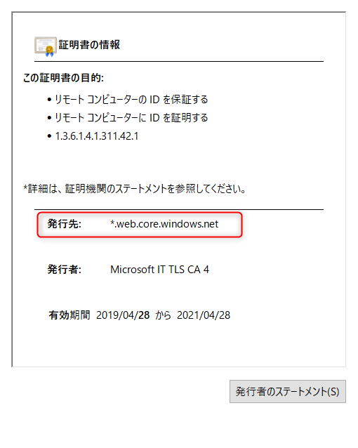 念のため、証明書を確認してみると、DigiCertをルートCAとするドメイン認証ベースのワイルドカード証明書がホストされていることが確認できます。