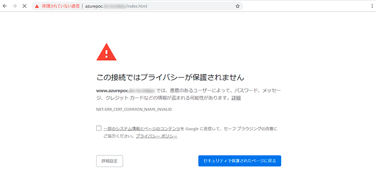 カスタムドメインを使うとサーバ証明書と接続先ドメインの不一致が起きるため、このような状態になります。