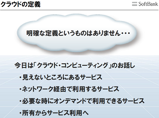 ここで、いったん「難しい」から離れて、お客さまが「クラウド」を理解するスタートとして、クラウドの定義、種類についてお話ししたいと思います。