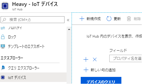 IoT HubのIoT デバイスから新規作成を選択してください。デバイス 1号を作成しましょう。