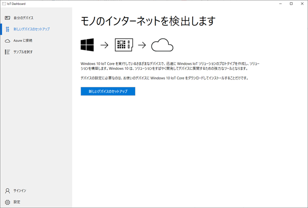 ダッシュボードのインストールが完了したら自動的に起動していると思います。 新しいデバイスのセットアップ を始めましょう。