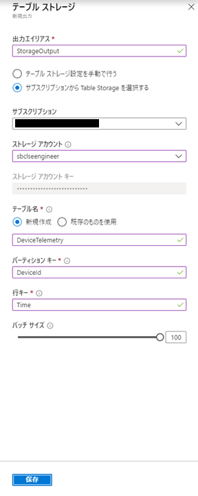 今回は Storage Account のテーブルストレージに出力してみましょう。